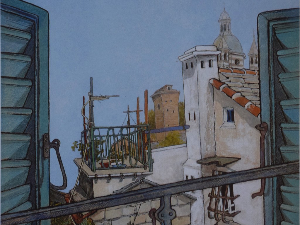 Conosciuta come la pittrice dei tetti di Genova, Annamaria y Palacios (1938-2013) è sempre stata legata ai suoi luoghi. Attraverso i suoi quadri si ha l’impressione di passeggiare per la Liguria, soffermandosi su dettagli noti eppure sempre suggestivi: le case che accostano colori accesissimi, le barche, la vegetazione, le crêuze cantate da Fabrizio de André, la verticalità di questa regione tra mare e monti, dove ogni passo apre un orizzonte inaspettato.